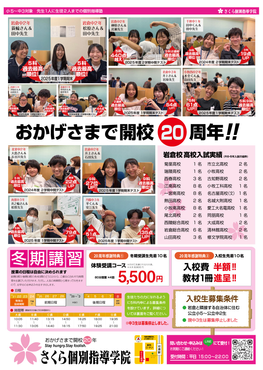 おかげさまで「開校20周年」まであと1カ月となりました!