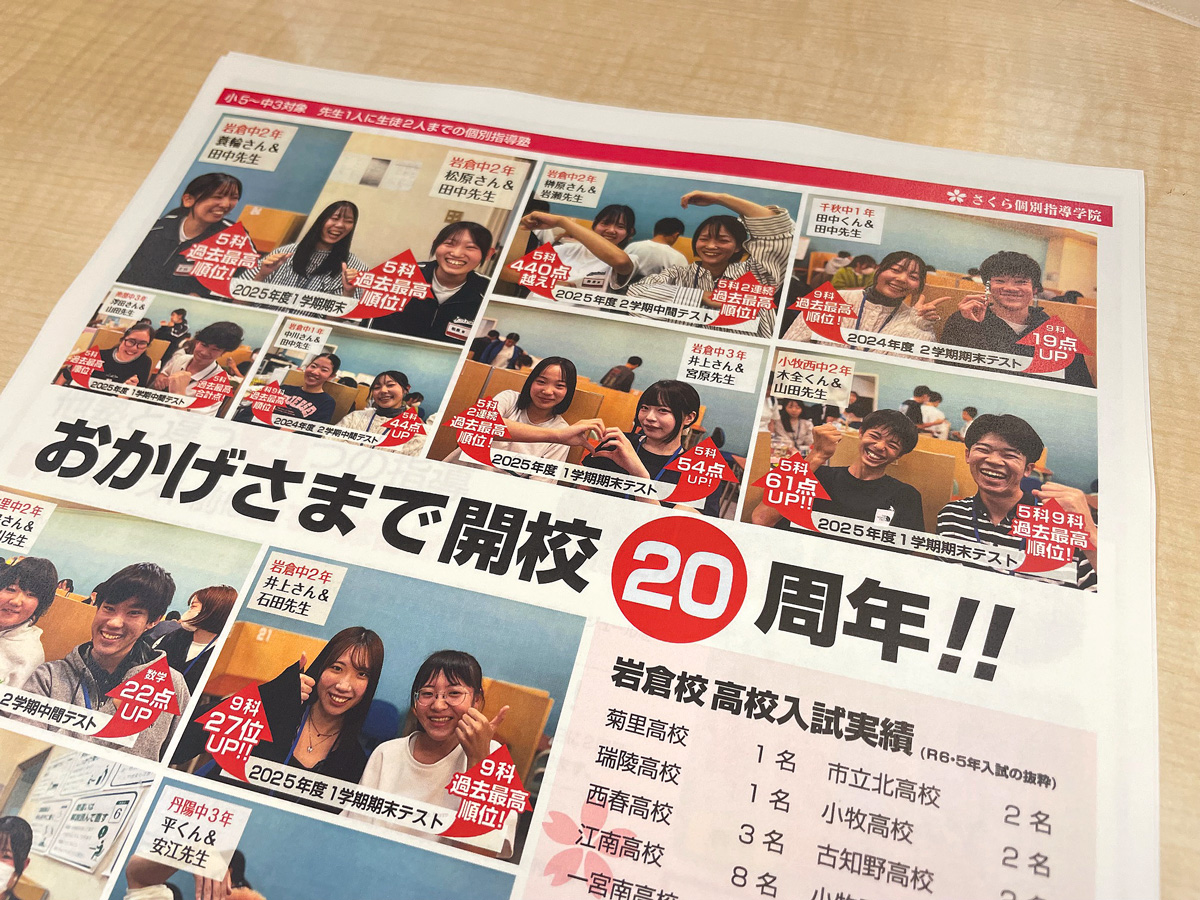 最初に折り込みをした塾の広告は2色刷り、文字ばかりの怪しい広告でした(笑)