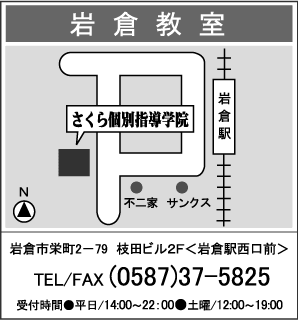 今の塾の場所から徒歩1分の、岩倉駅西ロータリー沿い、不動産屋ミニミニの右上の2階のテナントで開校しました。