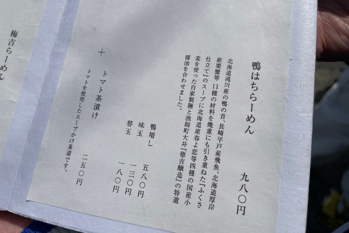 鴨のラーメンが有名な店のようです。これを食べに来ました。シンプルなラーメンが食べたい歳です。
