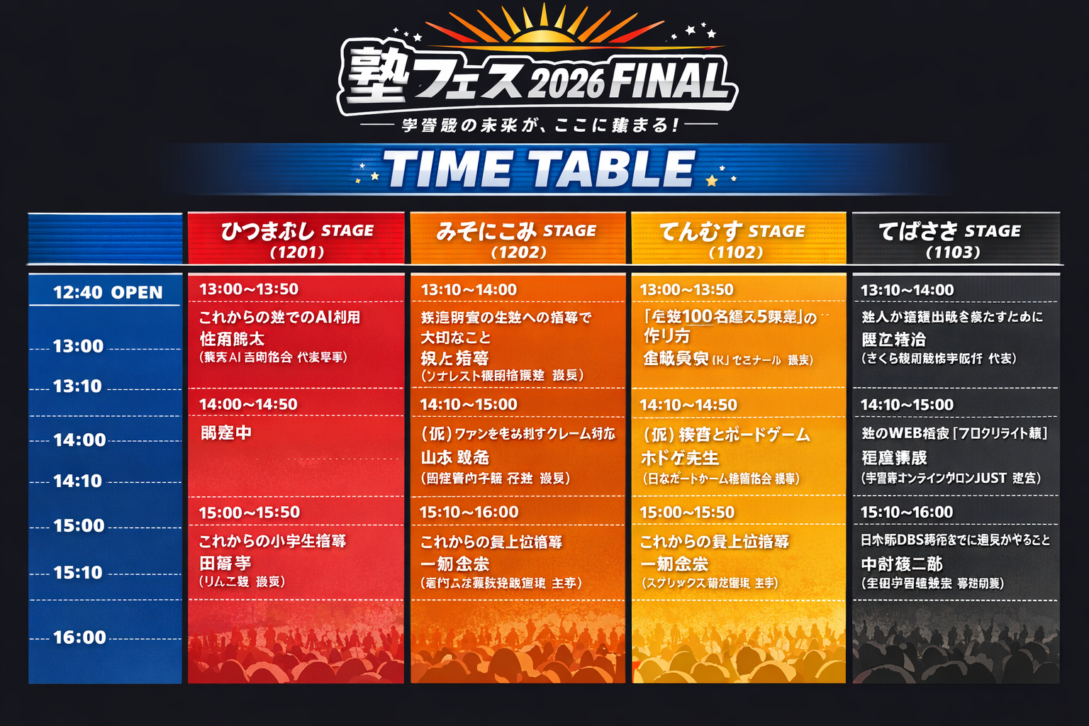 (余談で同業の先生へ書いてます)2026年春に開催の塾フェス2026ファイナル。